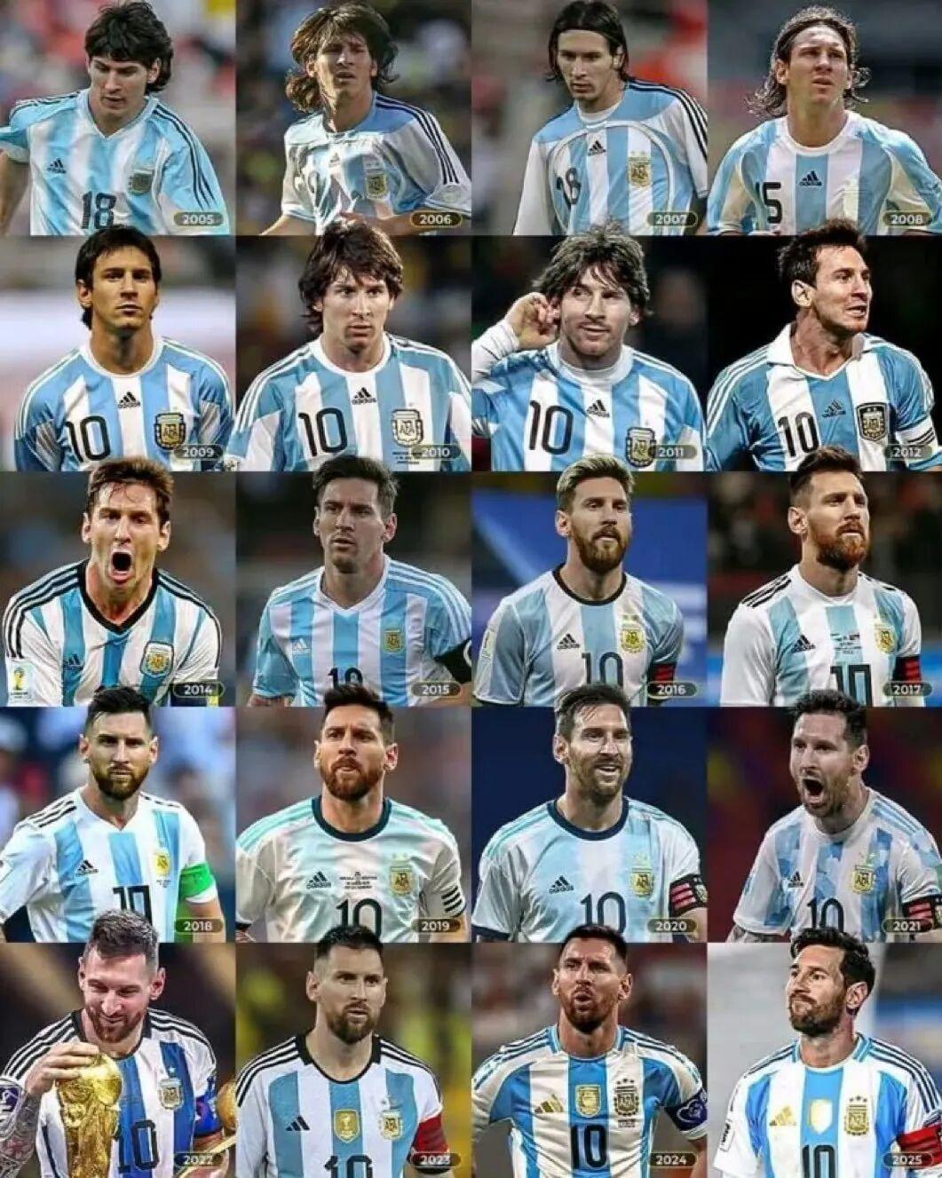 2005年8月17日,梅西在阿根廷和匈牙利的一场友谊赛中替补登场,完成自己的国家队首秀,至今已经过去了20年。